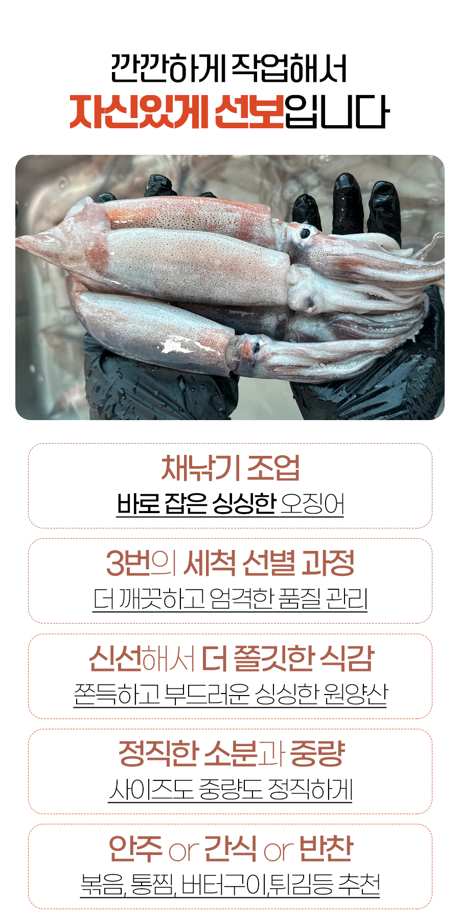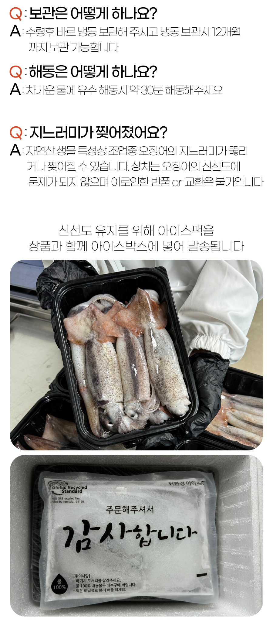 | 7. 상품구성 | 통찜용 오징어 1kg(7-9미) |