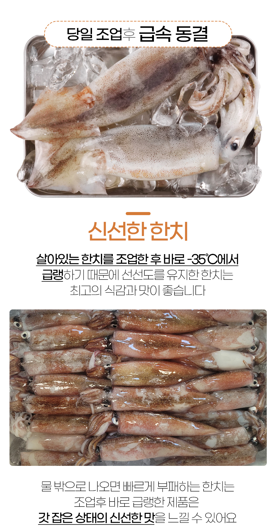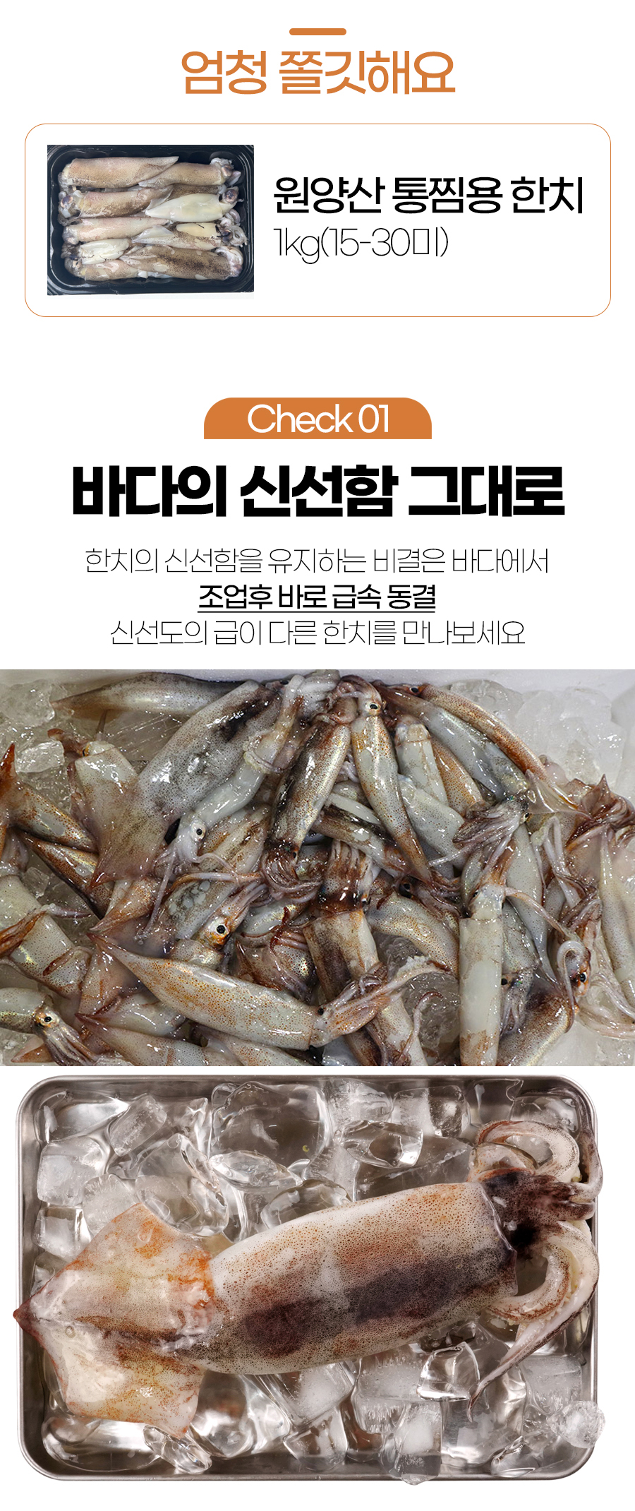 | 7. 상품구성 | 통찜용 한치 1kg(15-30미) |
