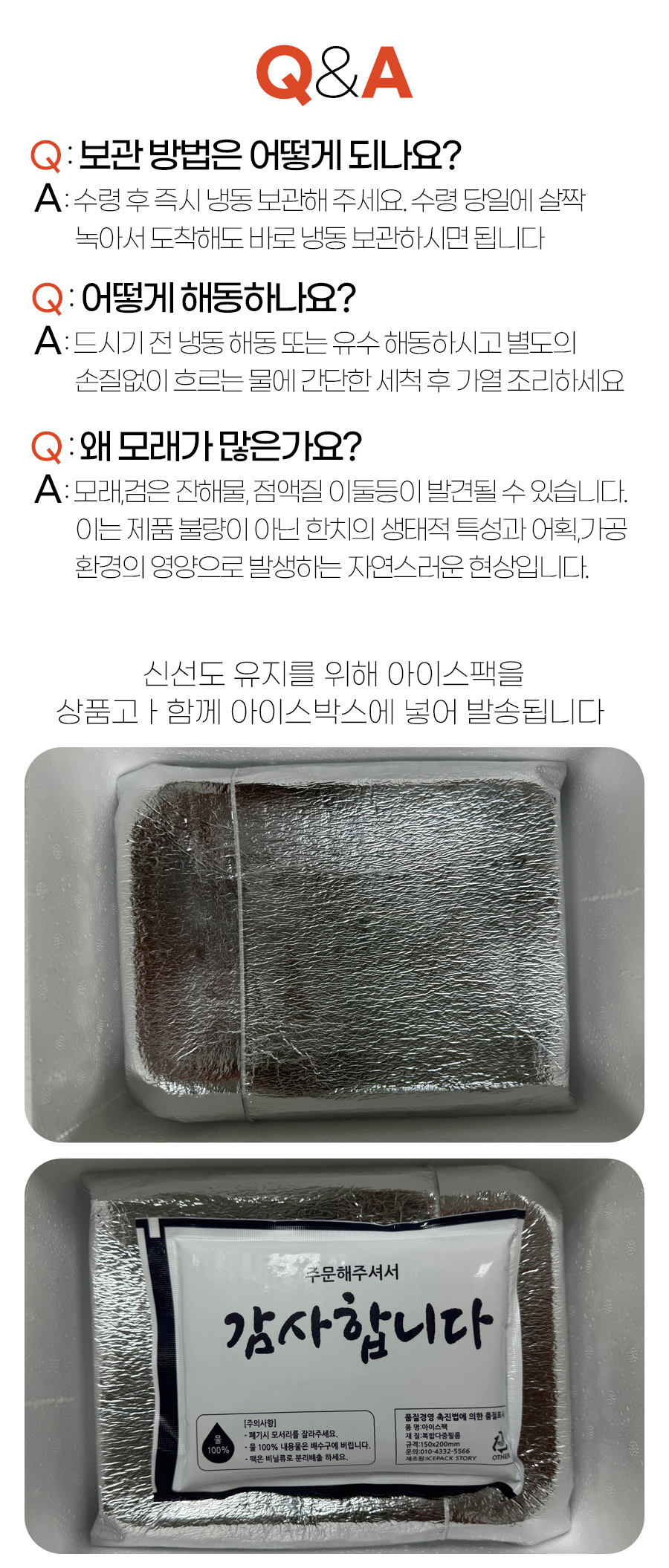 | 5. 제조연월일, 소비기한 또는 품질유지기한 | 신선식품이므로 최대한 빠른 섭취를 추천드립니다 |